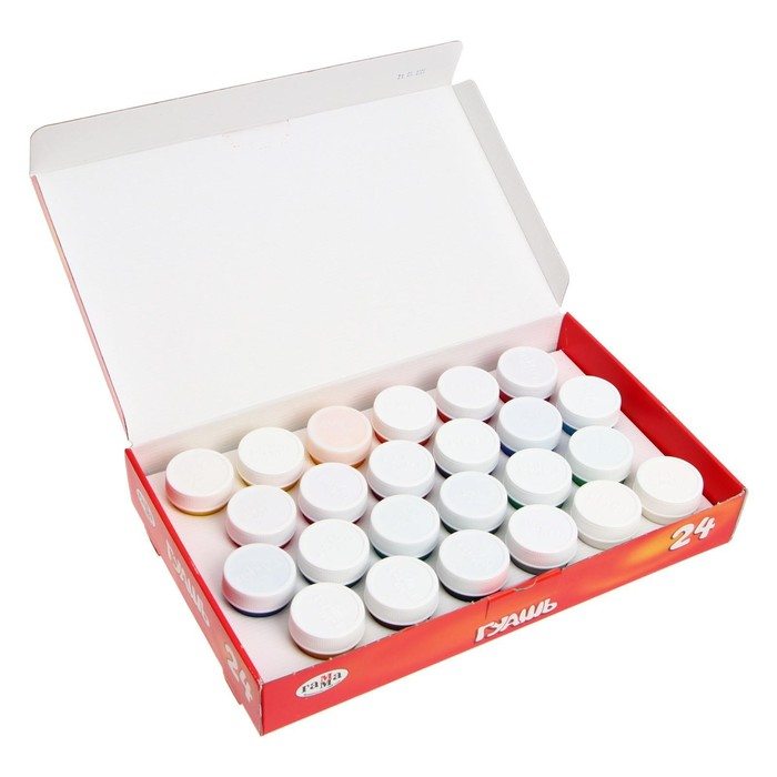 - Гуашь фасуется в пластиковые герметичные баночки с завинчивающейся крышкой.