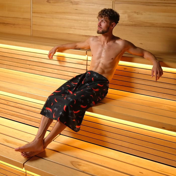 Полотенце для бани "Перчики" мужской килт 75х150 см, 100 % хл, вафельное полотно
