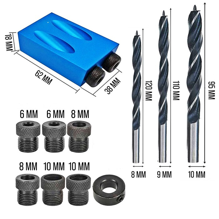 Набор для засверливания под углом 15° ТУНДРА, по дереву, 6-8-10 мм