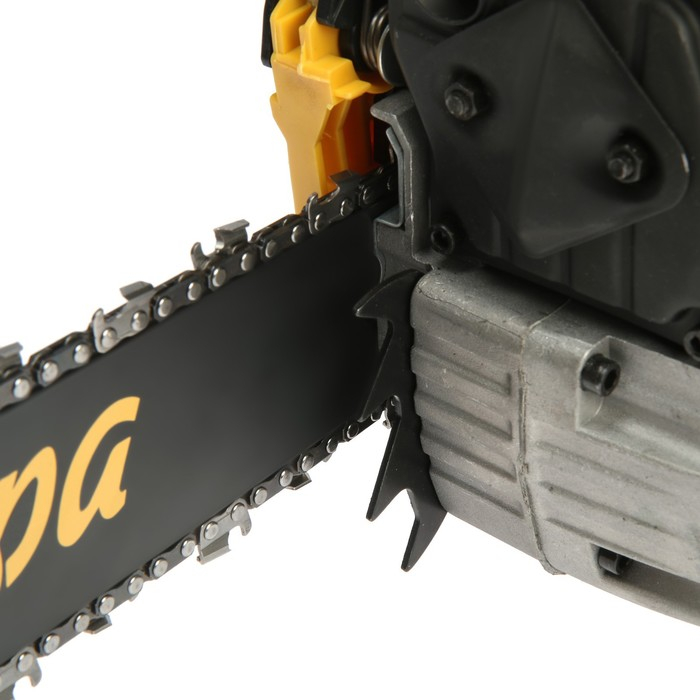 Модель оснащена тормозом цепи, который в экстренных ситуациях выполнит мгновенную остановку. Лёгкое ведение бензопилы достигается благодаря сбалансированному центру тяжести, системе гашения вибраций и удобным рукояткам.