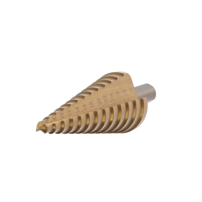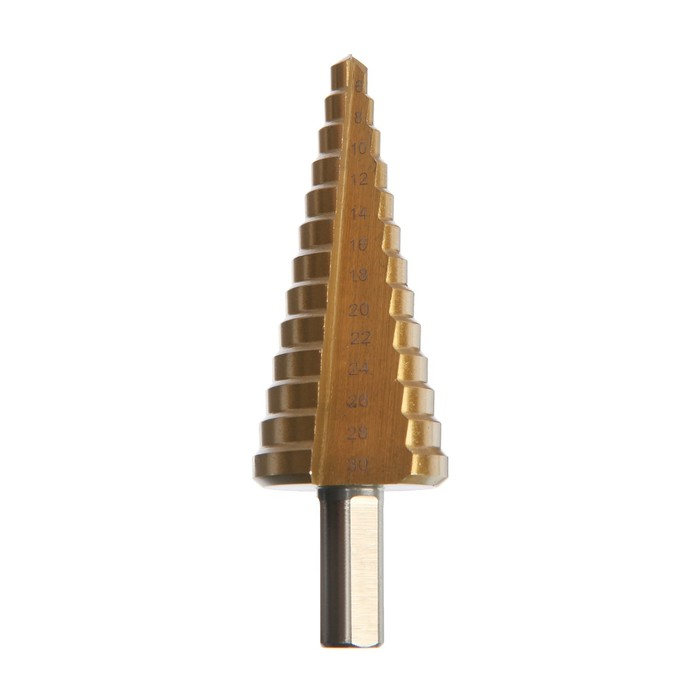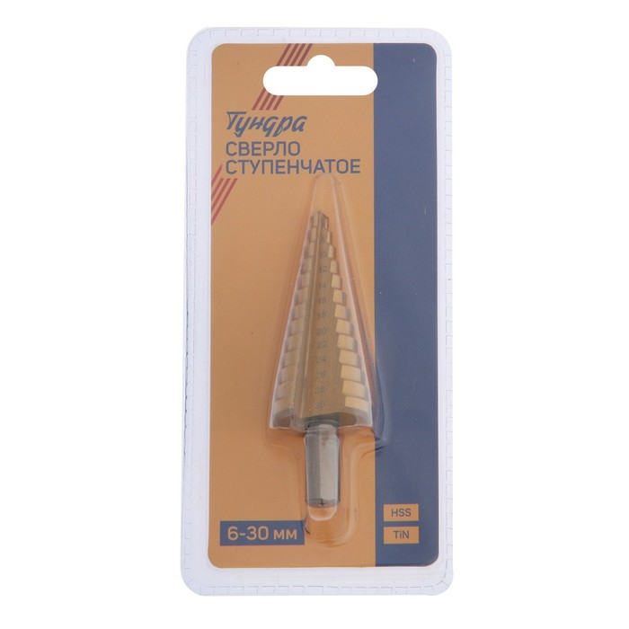 Сверло ступенчатое ТУНДРА, HSS, TiN, трехгранный хвостовик, 6 - 30 мм