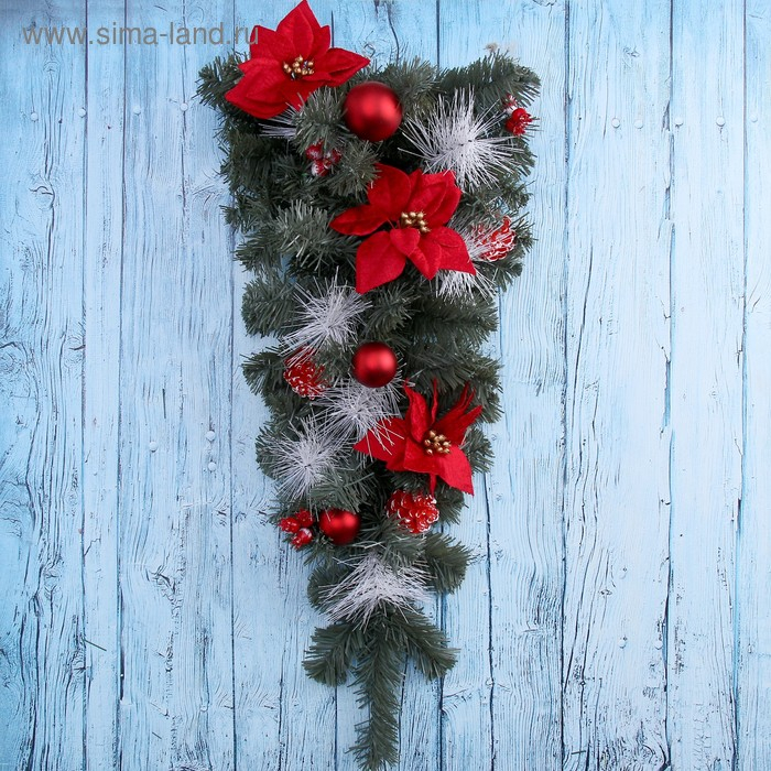 Ёлка декор настенная "С сединой, пуансетия" 57 см