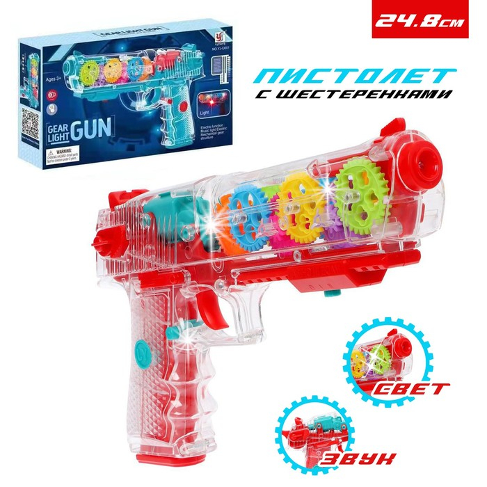 Пистолет «Техно», с вращающимися шестеренками, свет, звук
