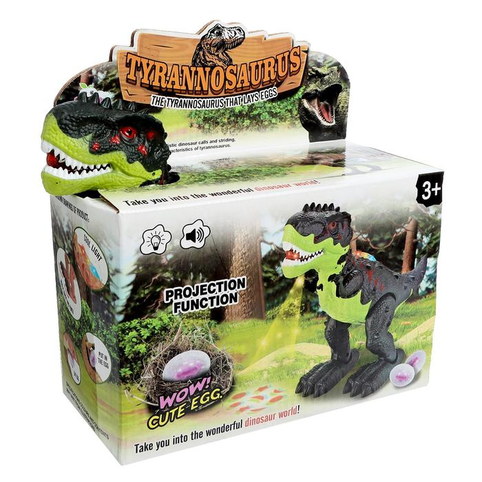 Динозавр «Рекс», откладывает яйца, проектор, свет и звук, работает от батареек, цвет зелёный
