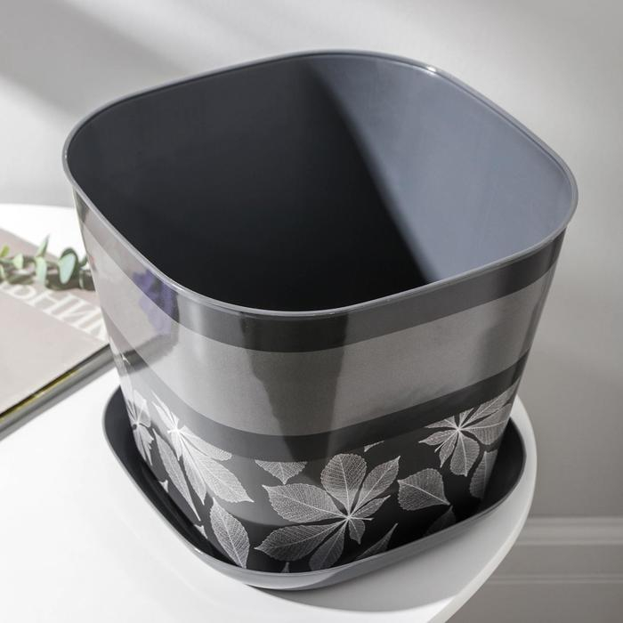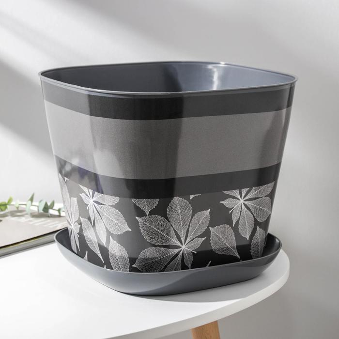 Горшок с поддоном «Листопад», 9,8 л, цвет тёмно-серый