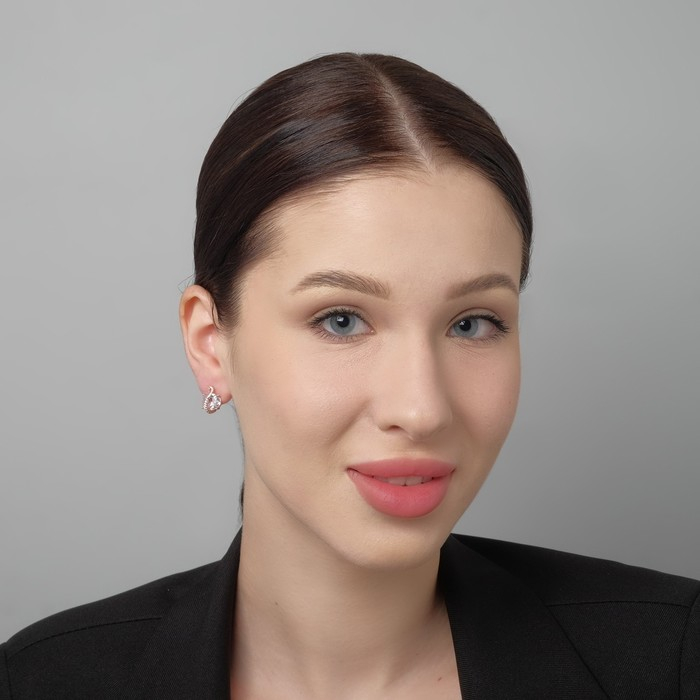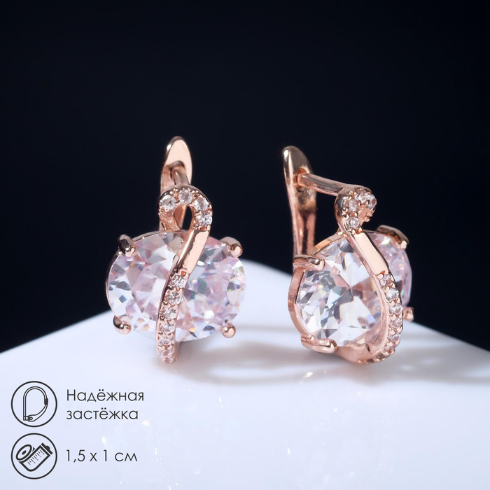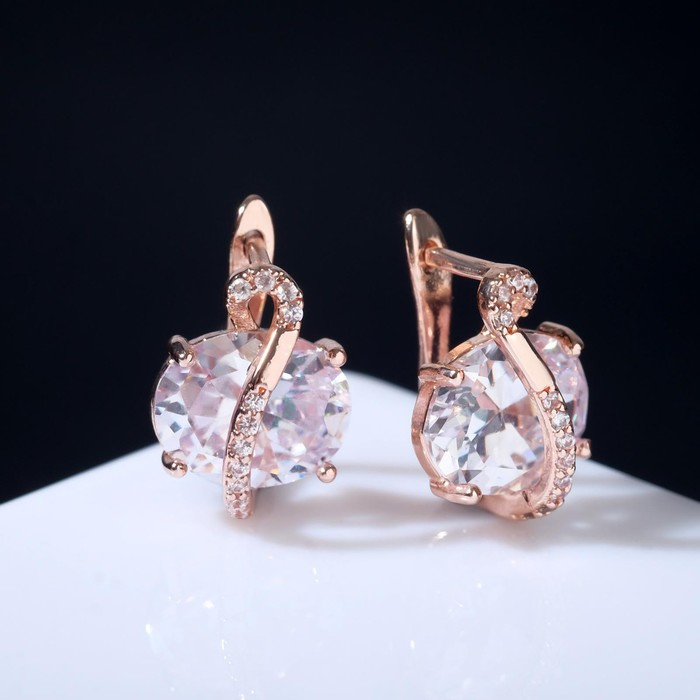 Серьги со стразами «Магия» бусинка в сплетении, цвет белый в розовом золоте