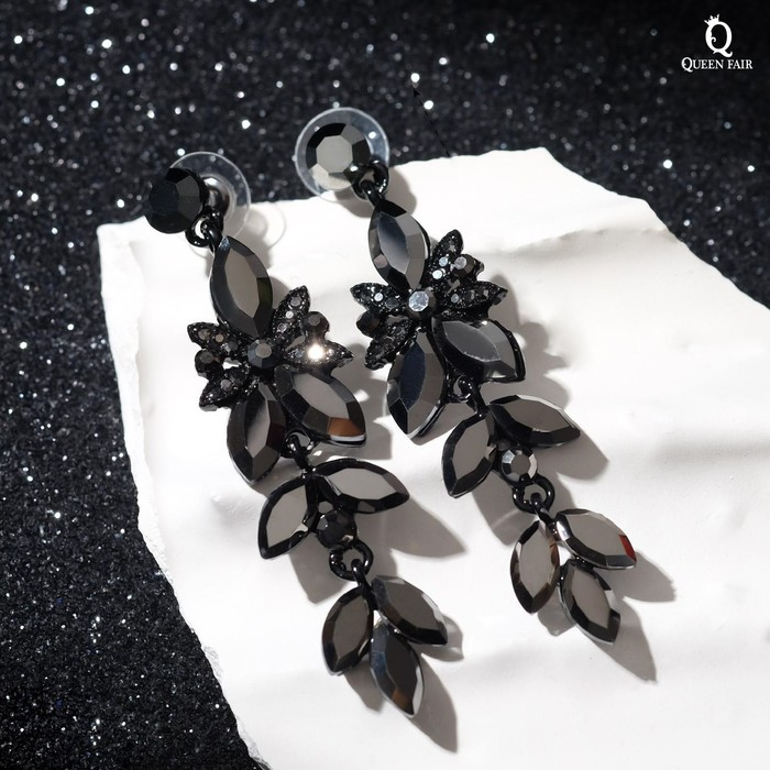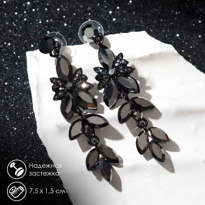 Серьги висячие со стразами «Ажур» весеннее настроение, цвет чёрный, 7см