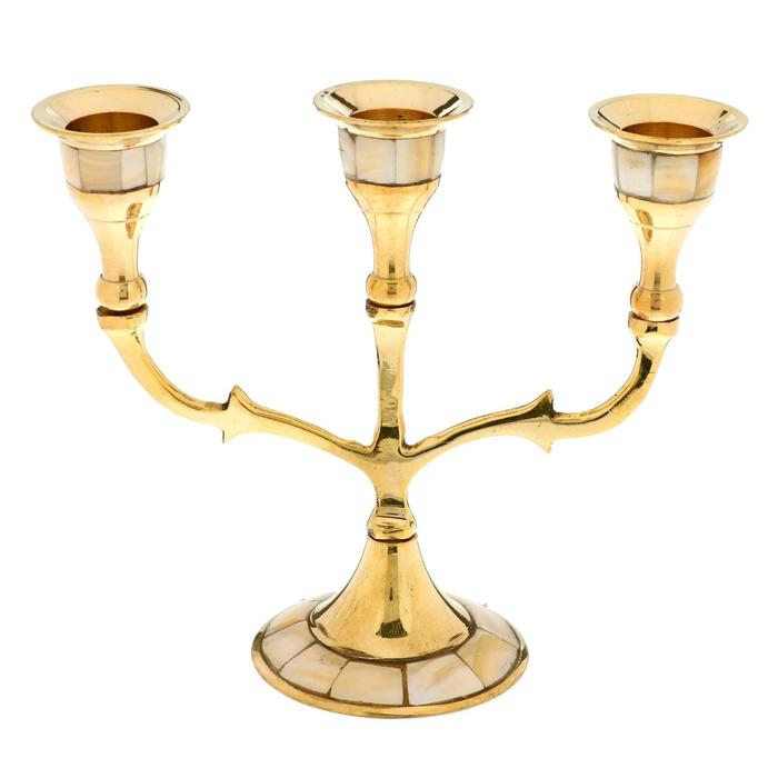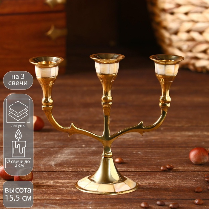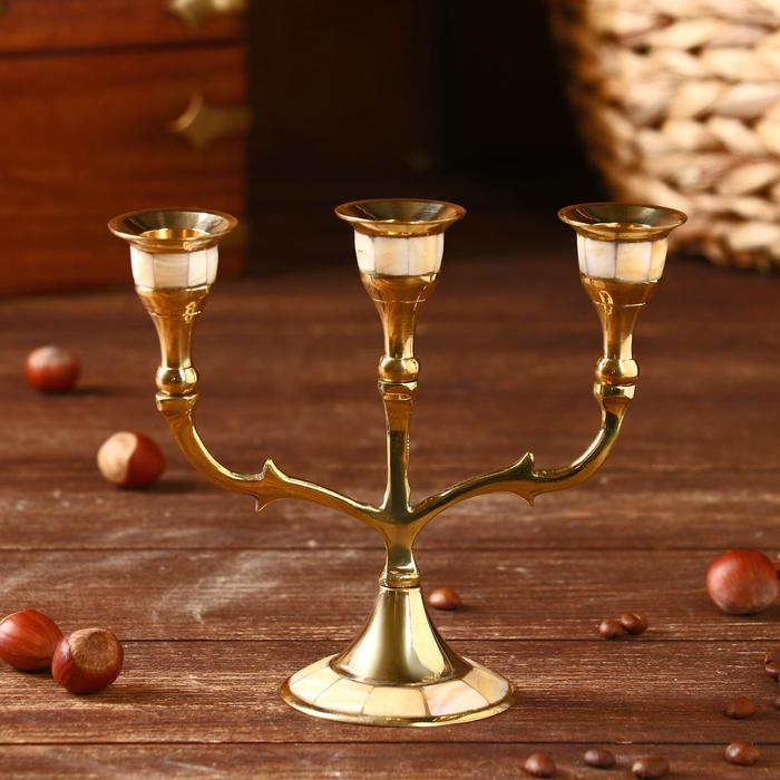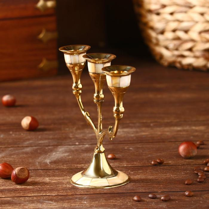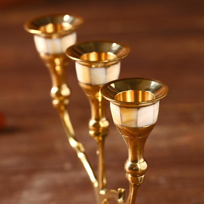 Подсвечник "Лоренц" на 3 свечи латунь, перламутр 13,5х6,5х15,5 см