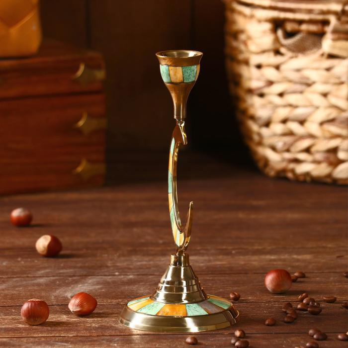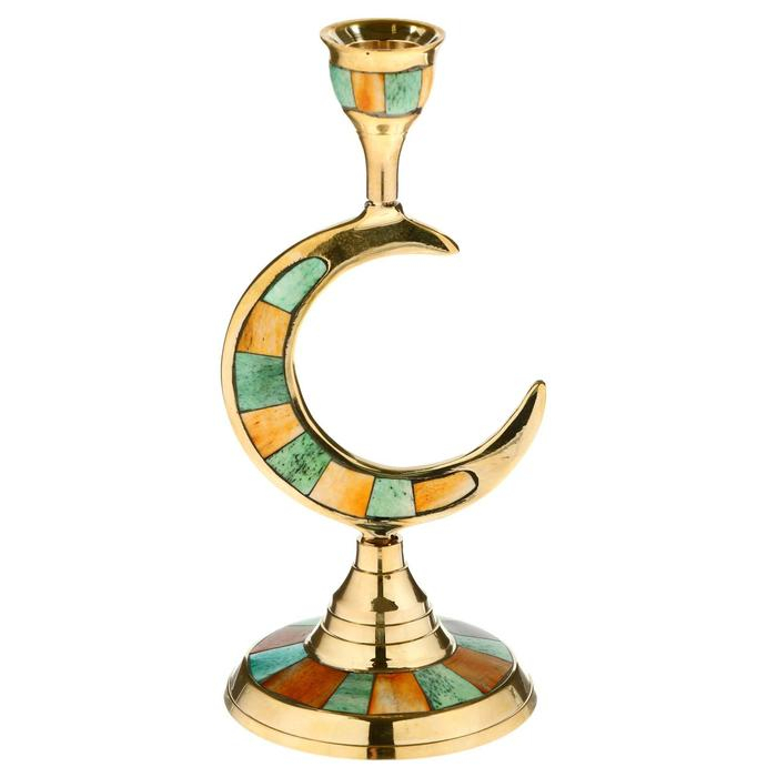 Подсвечник "Месяц" латунь, перламутр 8,5х8,5х19,5 см