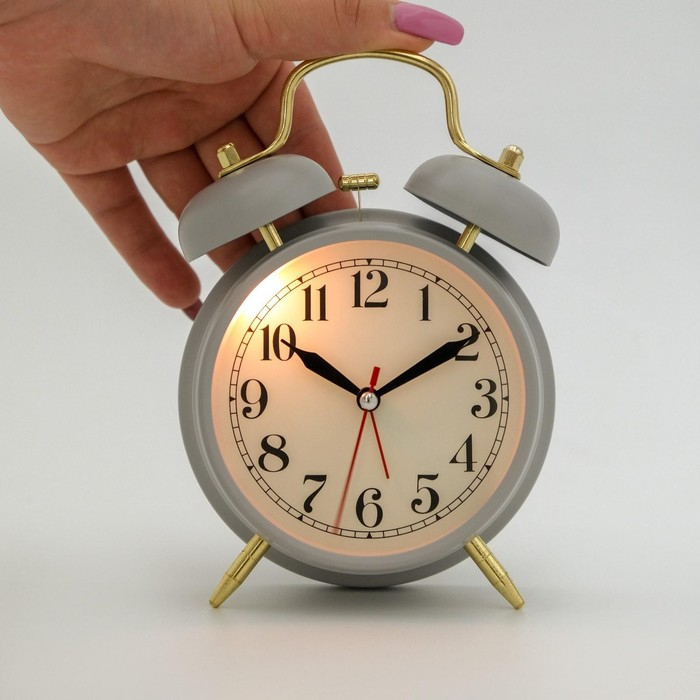 Будильник "Пеннант", с подсветкой, d-9 см, 17 х 11.5 см, серые