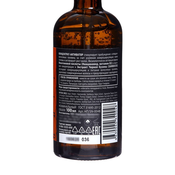 Концентрат-активатор помогает сделать волосы сильными и густыми легко и без дорогостоящих процедур. Высокая концентрация никотиновой кислоты и экстракта черной бузины стимулирует пробуждение «спящих» волосяных луковиц и усиливает микроциркуляцию крови в кожи головы, что ускоряет рост волос, укрепляет их, придает им густоту и жизненную силу.