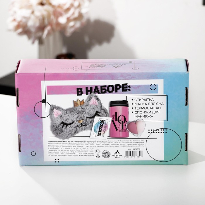 Подарочный набор «Добавь яркости», маска для сна, термостакан, спонж 2 шт, открытка