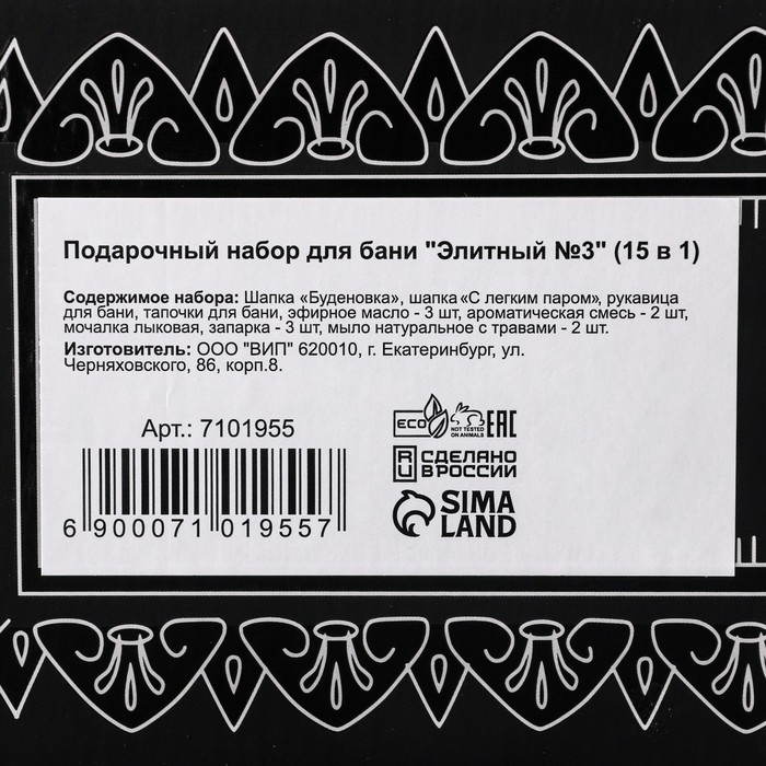 Для комфортного отдыха в парной возьмите с собой набор банных принадлежностей. Предметы из этого комплекта предохраняют тело от перегрева и являются средствами индивидуального пользования. Влажные изделия рекомендуется сушить в расправленном виде на горизонтальной поверхности. Принадлежности из войлока и фетра стирайте вручную при температуре воды 30 °C.