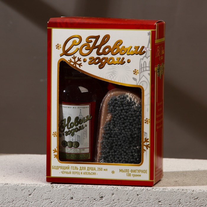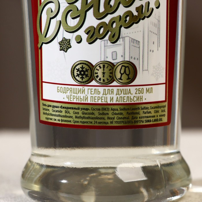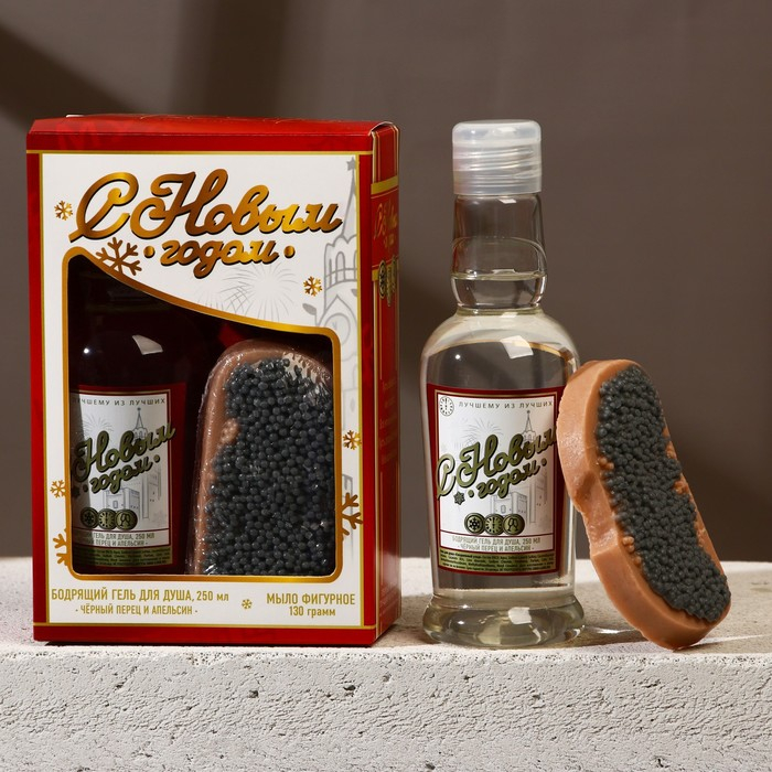 Новогодний подарочный набор косметики «С Новым годом», гель для душа во флаконе водки 250 мл и мыло для рук , ЧИСТОЕ СЧАСТЬЕ