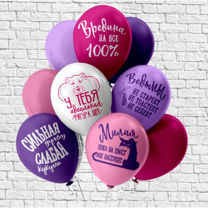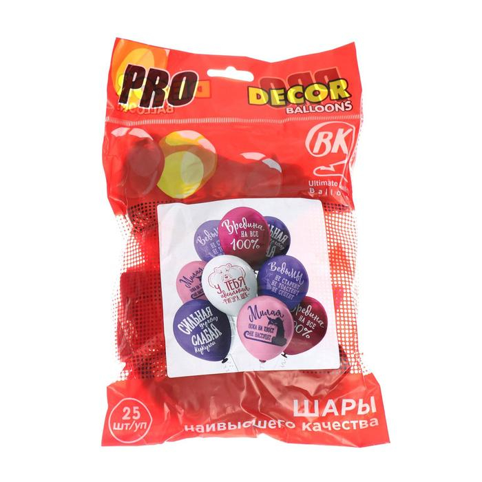 Шар латексный 12" «Оскорбления для неё! Идеальная...!», шелкография, 2-сторонний, 5 дизайнов, набор 25 шт., МИКС