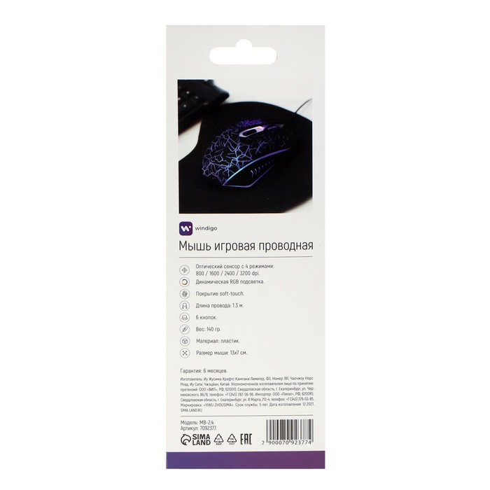 Игровая проводная оптическая мышь Windigo MB-2.4 обладает стильным эргономичным дизайном. Играйте работайте и выполняйте ежедневные задачи. Меняйте разрешение высокоточного сенсора одной кнопкой: 800, 1 600, 2 400, 3 200 DPI. Гибкий кабель 1,3 м не ощущается и обеспечивает оперативный отклик, что важно во время игровых сессий. Симметричная обтекаемая форма мыши обеспечивает удобную работу любой рукой. Современная RGB-подсветка подарит новые эмоции во время использования. Прочное и приятное на ощупь прорезиненное покрытие soft-touch предотвращает скольжение мыши в руках.