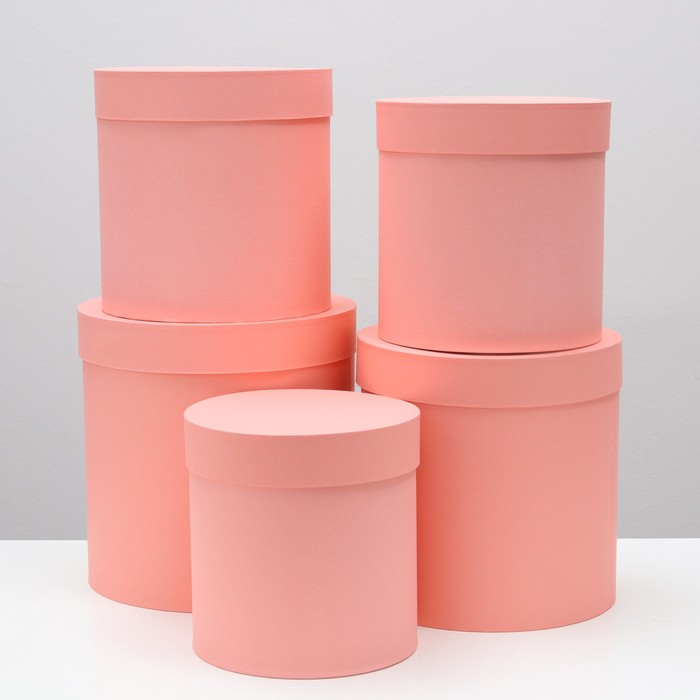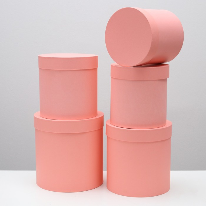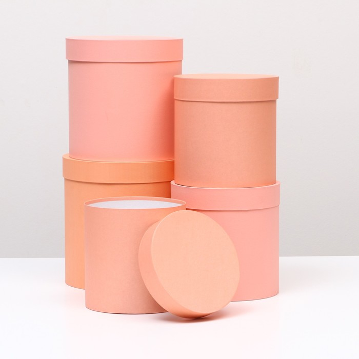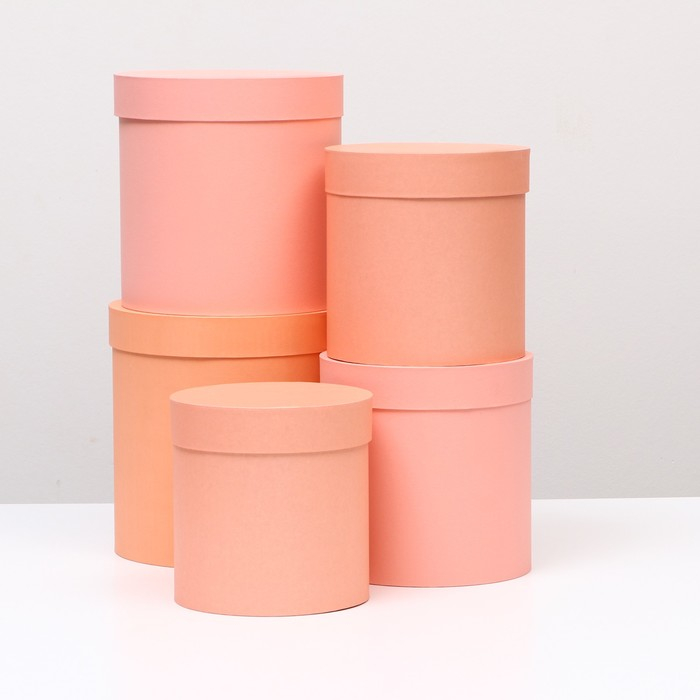 Набор круглых коробок 5 в 1 "Краски", персиковый, 25 х 25 х 25 - 19 х 19 х 19 см