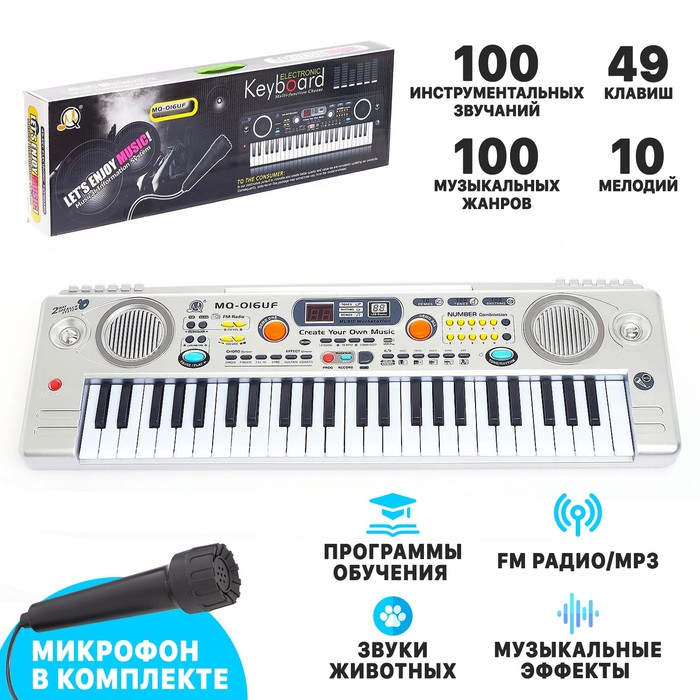 Синтезатор «Музыкальный взрыв» c радио и USB, 49 клавиш, работает от сети и от батареек, блок питания