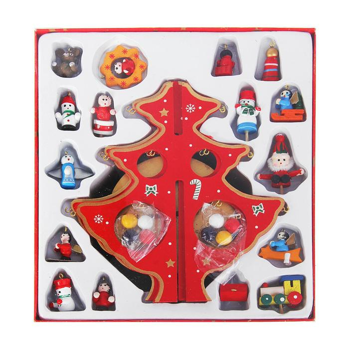 Сувенир новогодний «Ёлка на подставке с игрушками», 18 предметов, музыкальная, заводная, МИКС