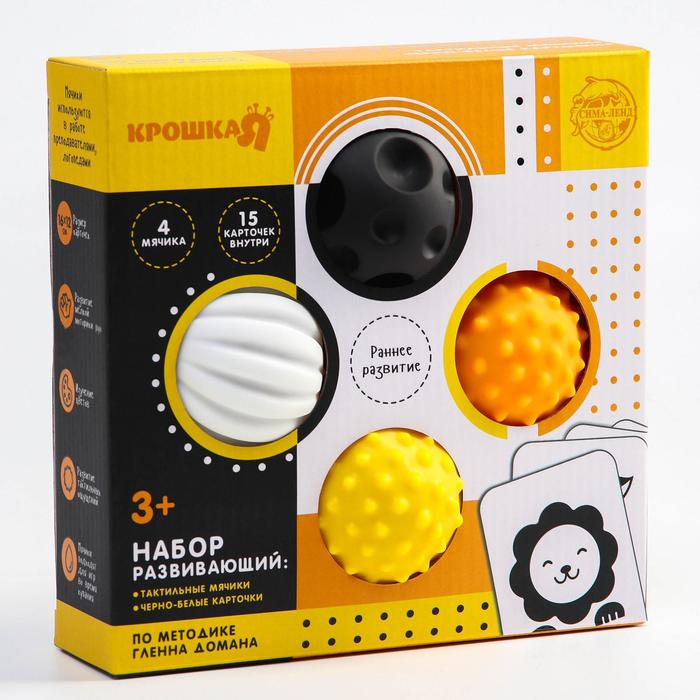 Набор развивающих тактильных мячиков по методике Гленна Домана, с пищалкой, 4 шт, Крошка Я