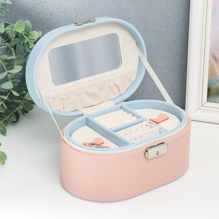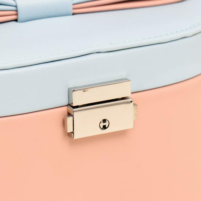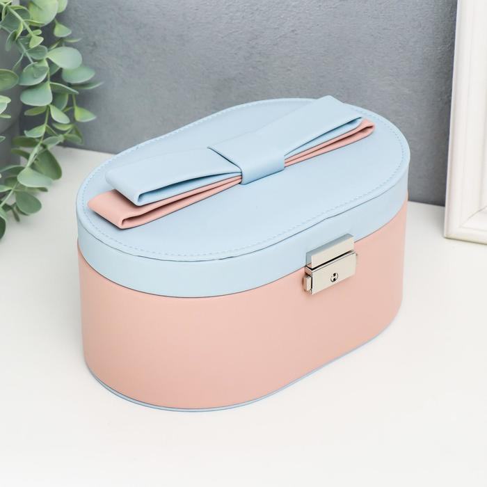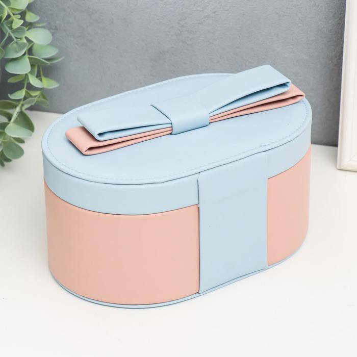 Шкатулка кожзам для украшений "Бант" персиково-голубая 12х13,5х20,5 см
