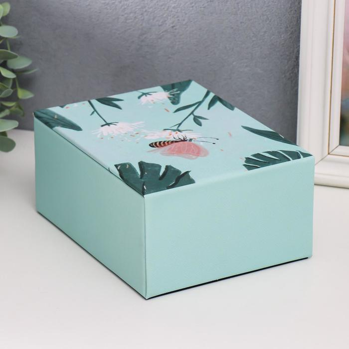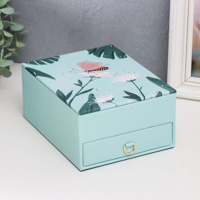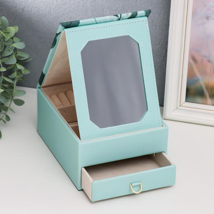 Шкатулка кожзам для украшений "Одуванчики и пальмовые листья" 8,7х14,3х18,2 см