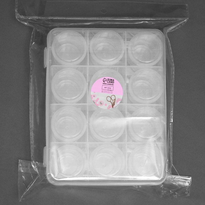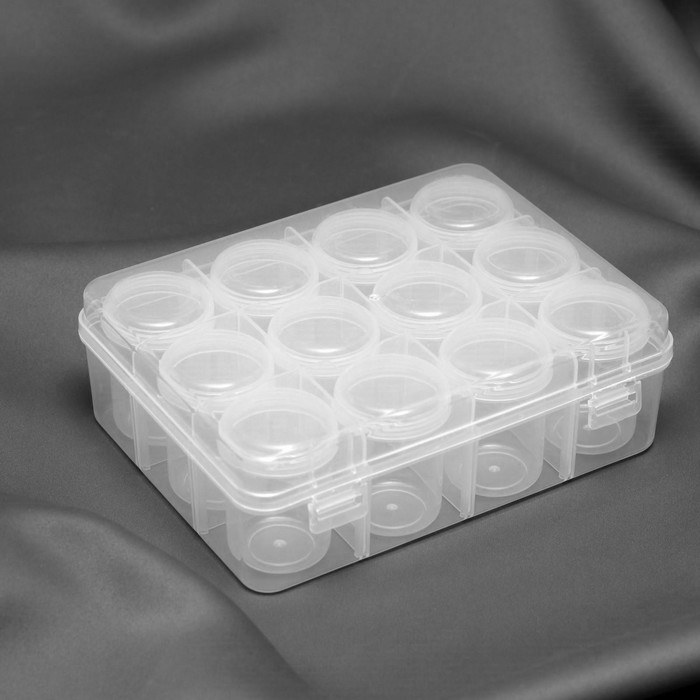 Набор баночек для рукоделия, 12 шт, d = 4,2 × 5,5 см, в контейнере, 18,5 × 14 × 5 см, цвет прозрачный