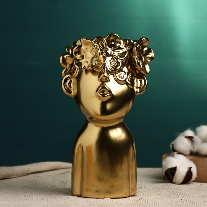 Кашпо - ваза "Мальчик с венком" золотое, 23х10х12см