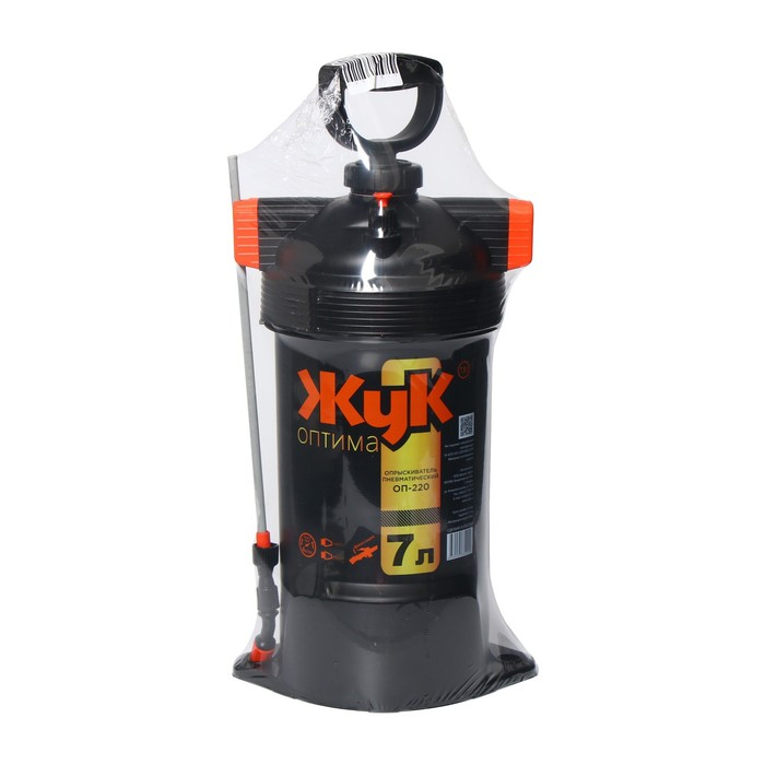 Опрыскиватель помповый, 7 л, термоусадка, пластиковый брандспойт, «Жук»