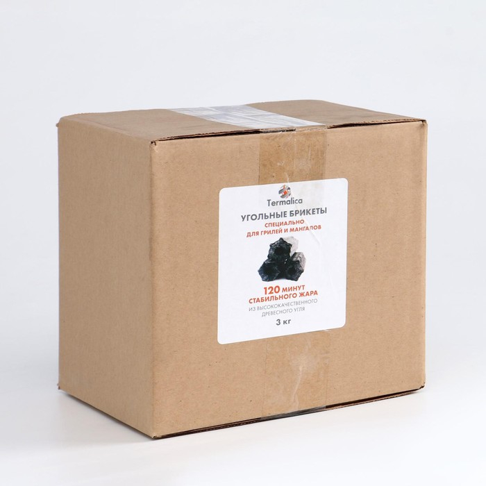 Уголь древесный брикетированный 3 кг, короб