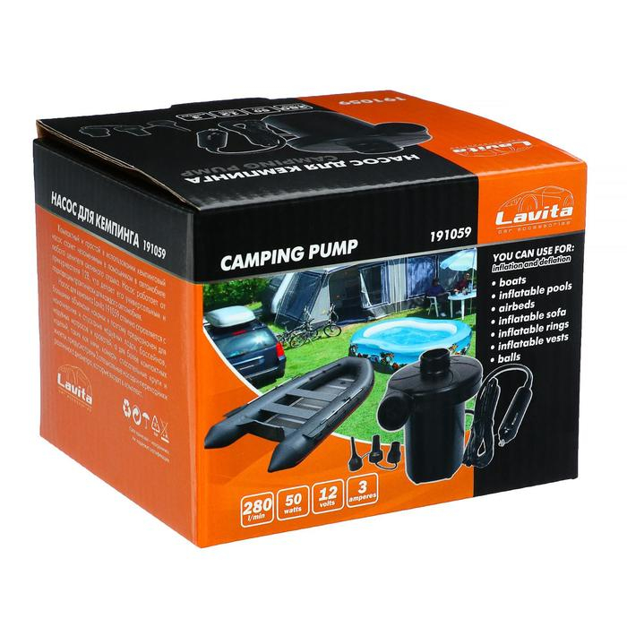 Насос электрический 12 В Lavita, от прикуривателя, 3 насадки