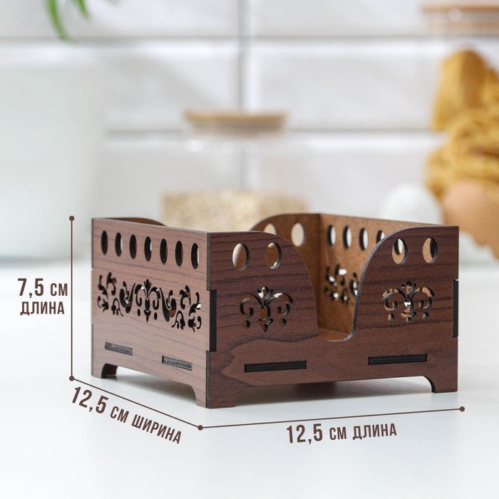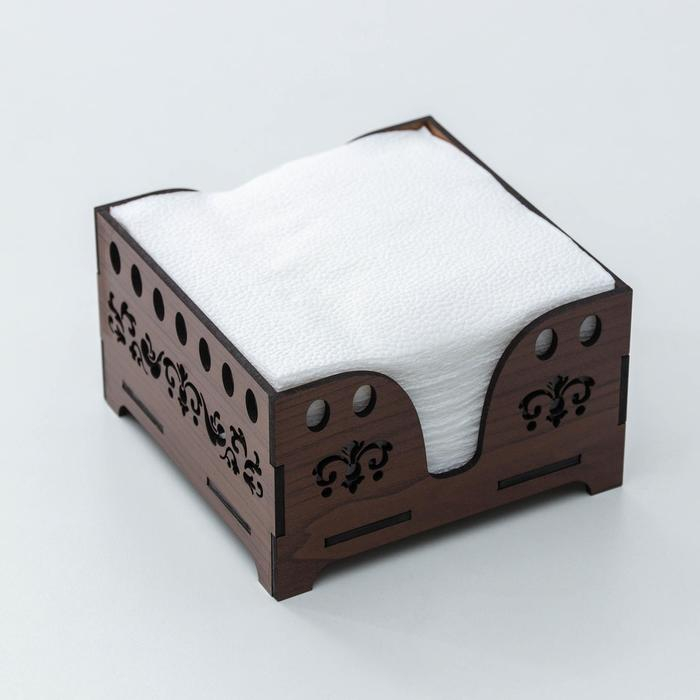 Салфетница Доляна «Орех», 12,5×12,5 см, с салфетками, деревянная, цвет коричневый