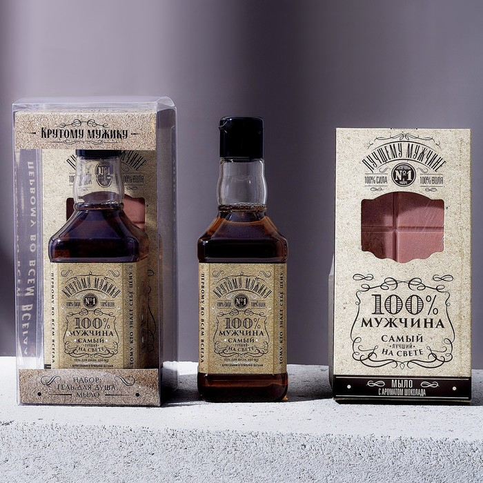 Новогодний подарочный набор косметики «Крутому мужику», гель для душа во флаконе виски 250 мл и мыло для рук 80 г , Новый Год