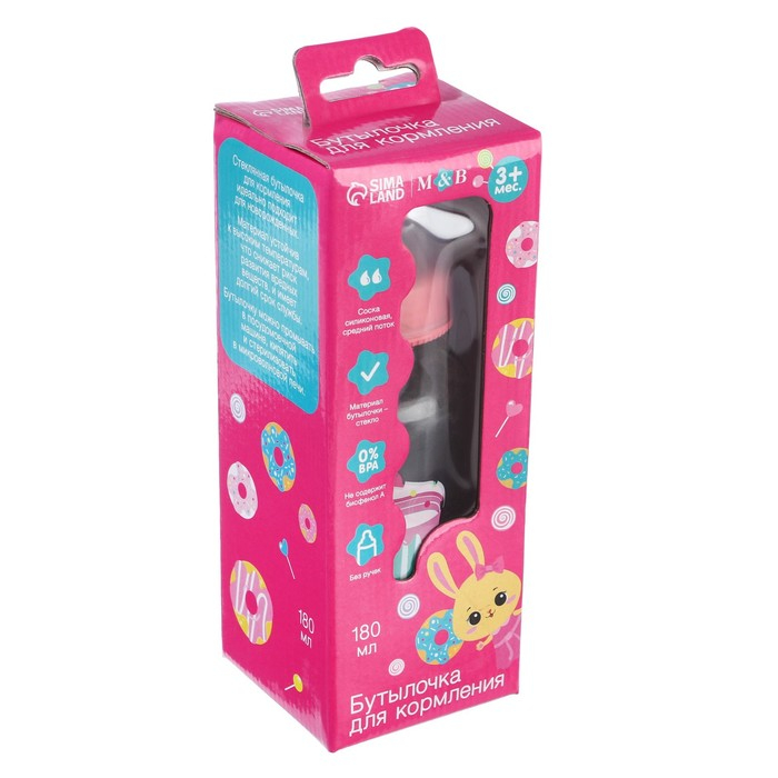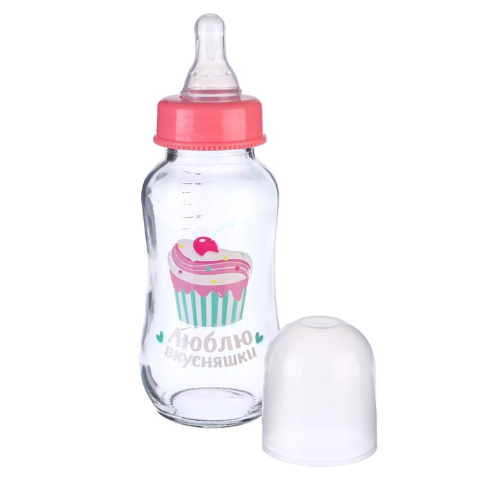 Бутылочка для кормления стекло «Люблю вкусняшки», классическое горло, средний поток, 180 мл., от 3 мес.