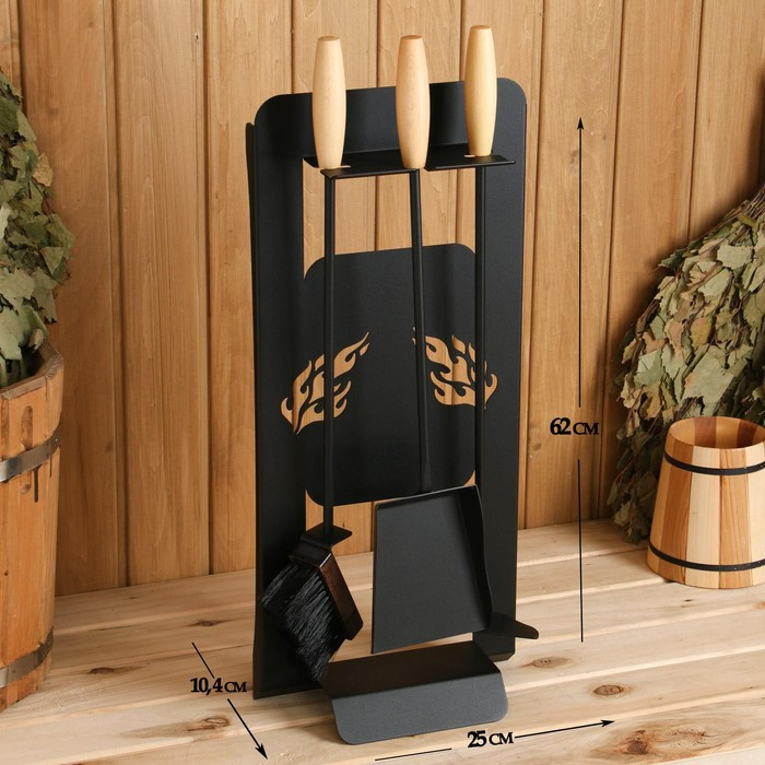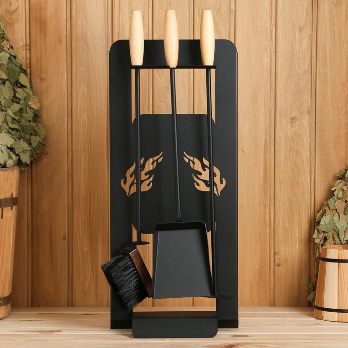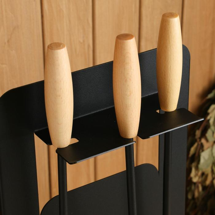 Каминный набор КН-0-1 на стойке 3 предмета (щетка, кочерга, совок) черный