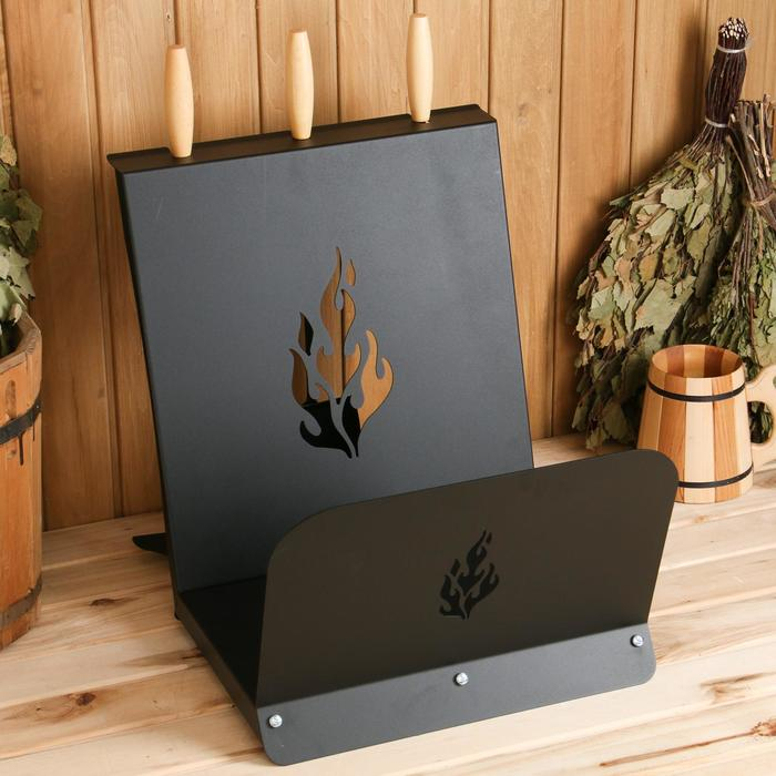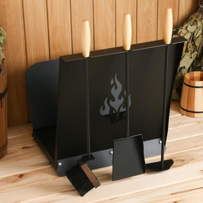 Каминный набор КН 0-3Д с дровницей 3 предмета (щетка, совок, кочерга) черный