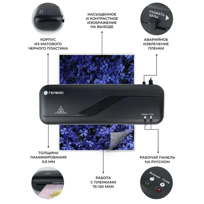 Ламинатор A4 75-150 мкм, 2 вала, скорость 30 см/мин, Гелеос "ЛМ A4 Старт"