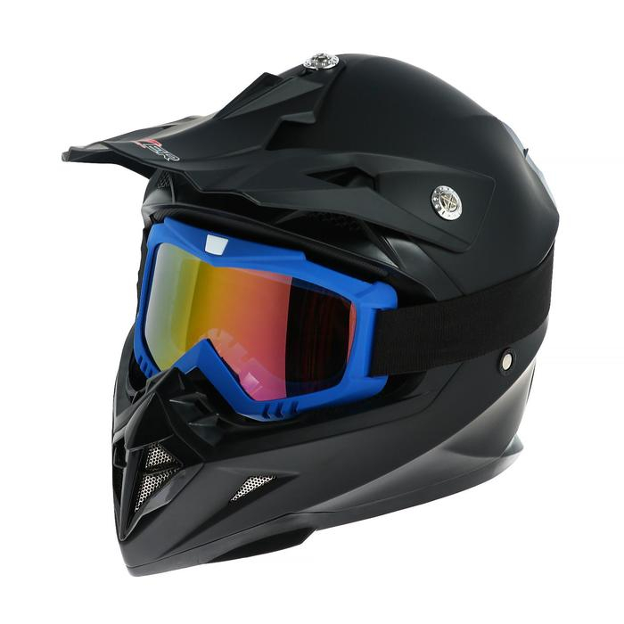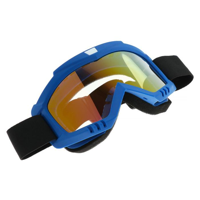 Очки-маска для езды на мототехнике, стекло золотой хром, цвет синий, ОМ-11