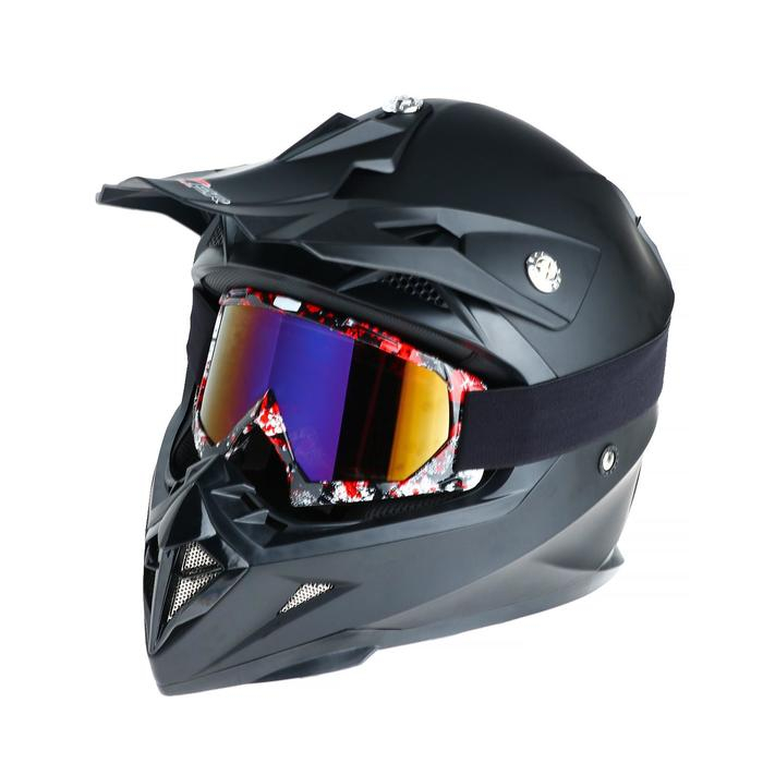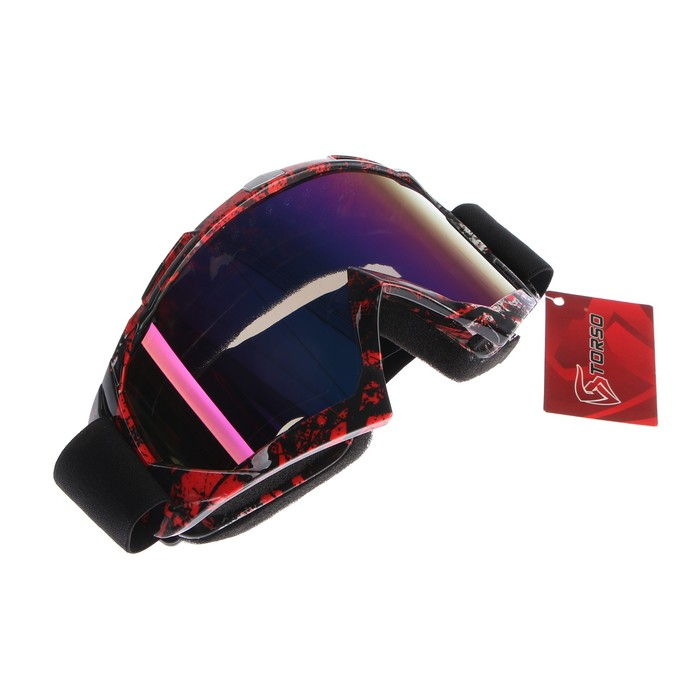 Очки-маска для езды на мототехнике, стекло сине-фиолетовый хамелеон, черно-красные, ОМ-25