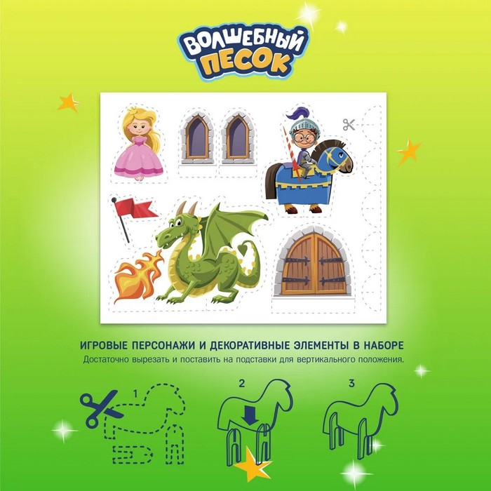 Набор «Замок» с волшебным песком поможет ребёнку играть в песочнице прямо дома! На ощупь песок мягкий и воздушный, при этом во время лепки он хорошо сохраняет свою форму. А ещё песок не высыхает на воздухе. Персонажи в наборе и формочки в виде замков помогут ребёнку придумать сюжеты для игр.