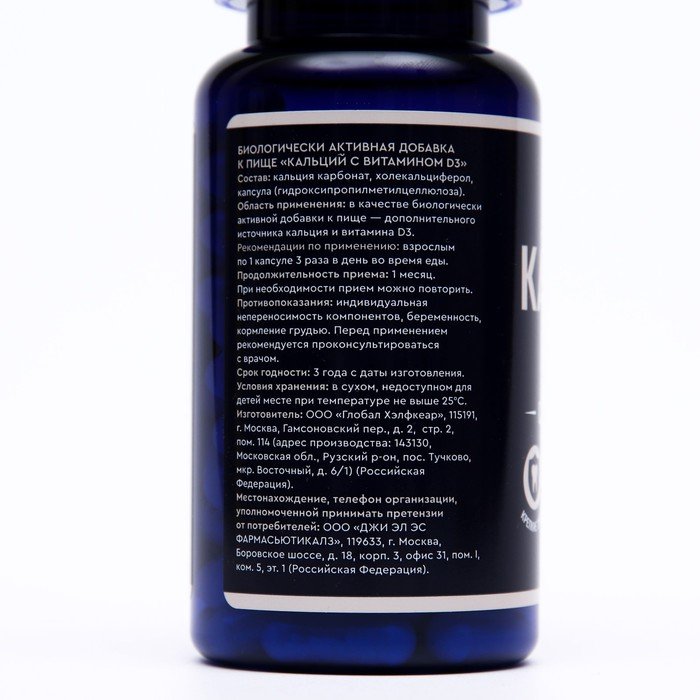 Состав: кальция карбонат, капсула (гидроксипропилметилцеллюлоза), холекальциферол.