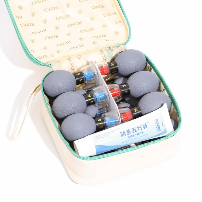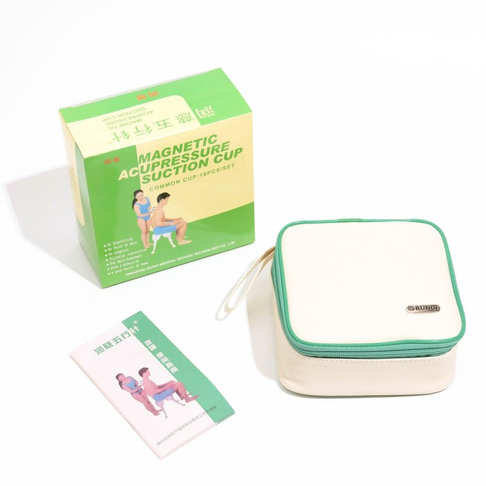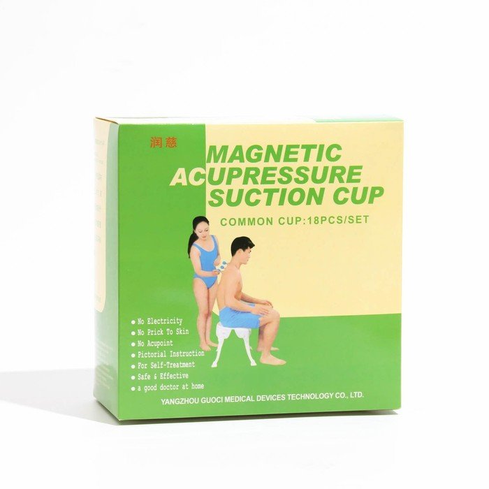 - Набор из 18 магнитных банок, сочетающих эффект акупунктуры, аспирации, магнитотерапии, точечного массажа и аутогемотерапии.