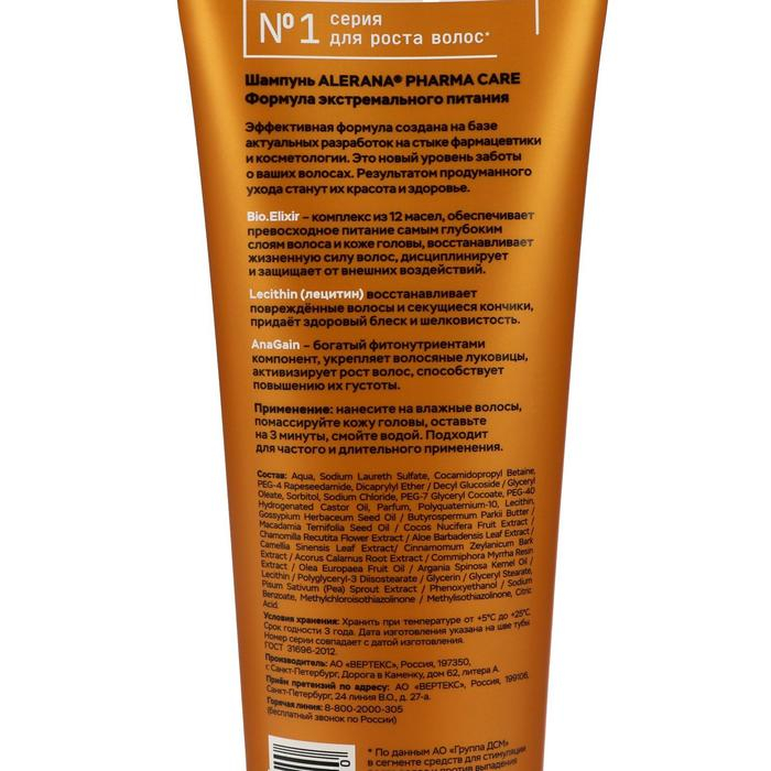 Шампунь для волос Alerana Pharma Care, формула экстремального питания, 260 мл