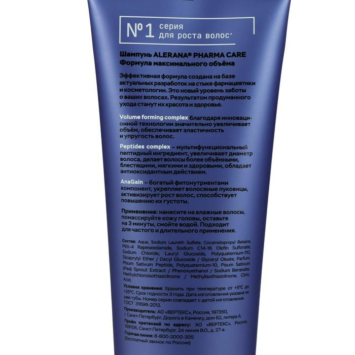 Шампунь для волос Alerana Pharma Care, формула максимального объёма, 260 мл