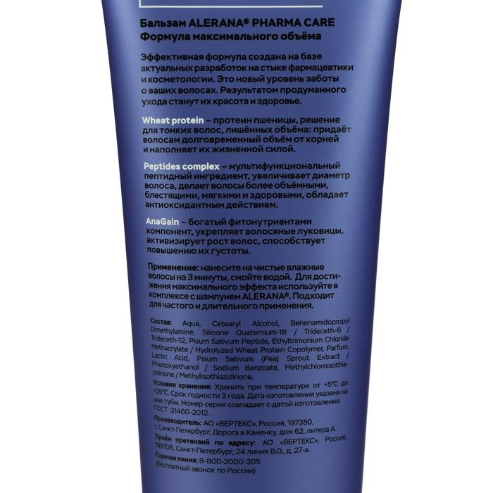 Бальзам для волос Алерана Pharma Care формула максимального объёма, 260 мл