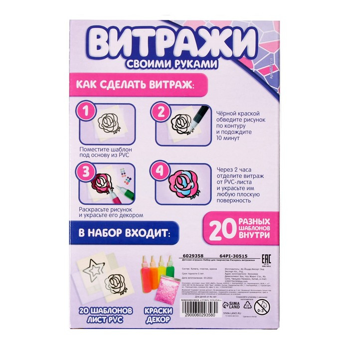 В серии наборов для творчества «Раскрась витражики» представлено 7 видов наборов.
