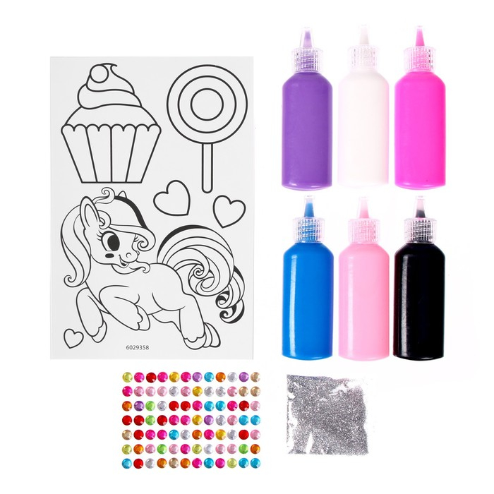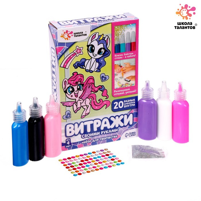 Набор для творчества «Раскрась витражики. Пони», 20 шт. в наборе