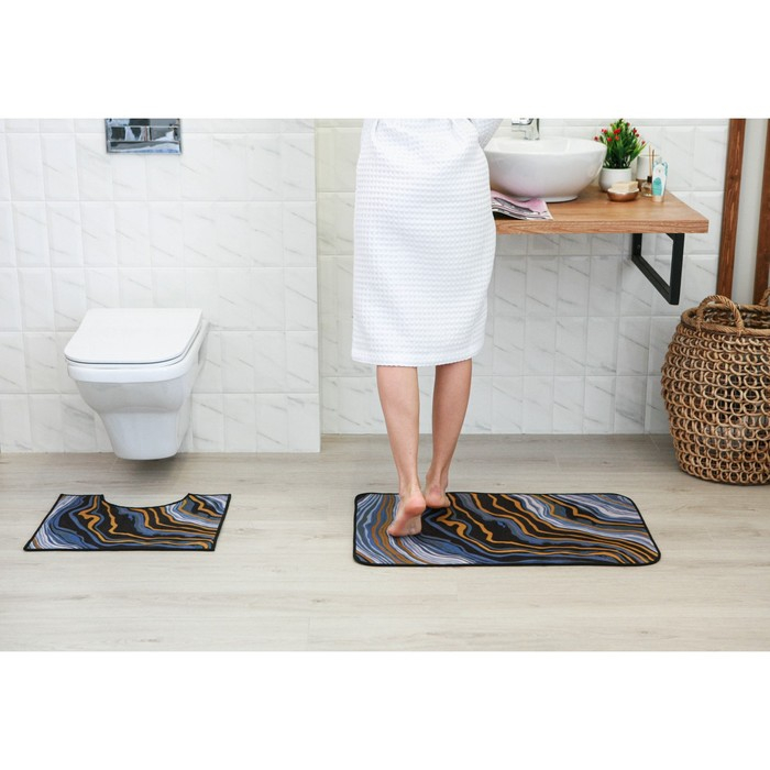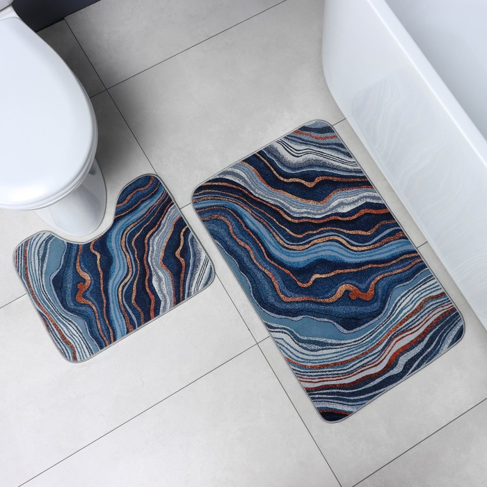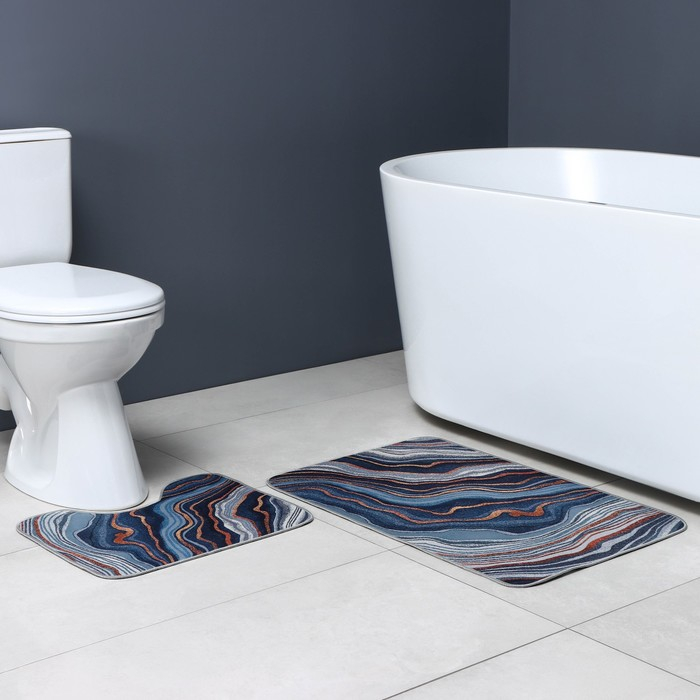 Коврики для ванной и туалета Доляна «Каменная лагуна», 2 шт: 50×80 см, 50×40 см