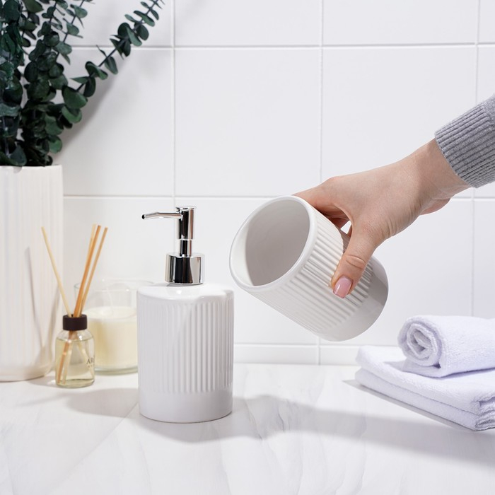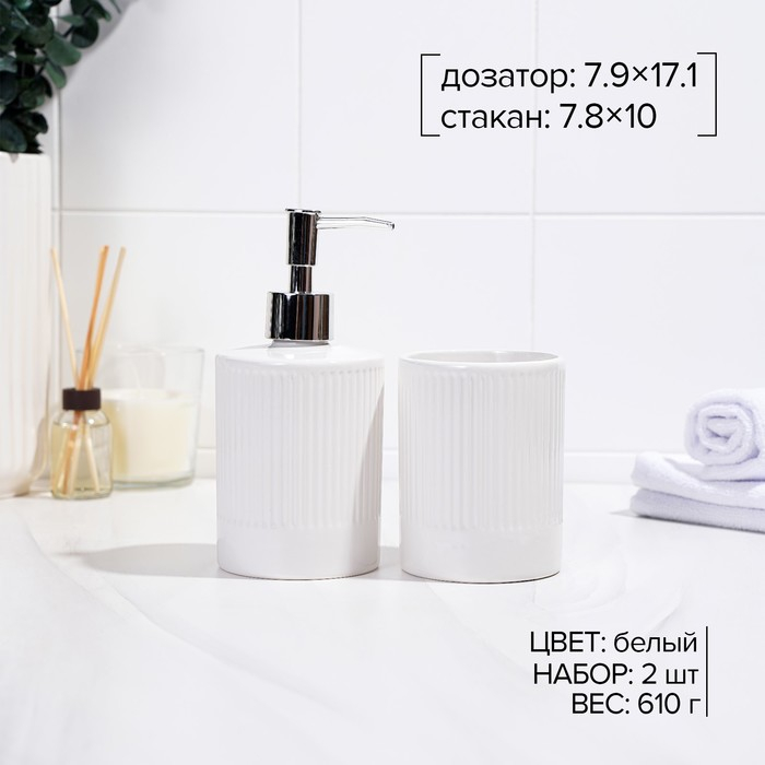 Набор аксессуаров для ванной комнаты «Лина», 2 предмета (дозатор для мыла, стакан), цвет белый