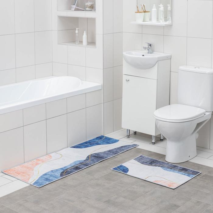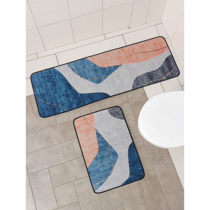 Набор ковриков Доляна «Образ», 2 шт, 45×120 см, 40×60 см, цвет синий